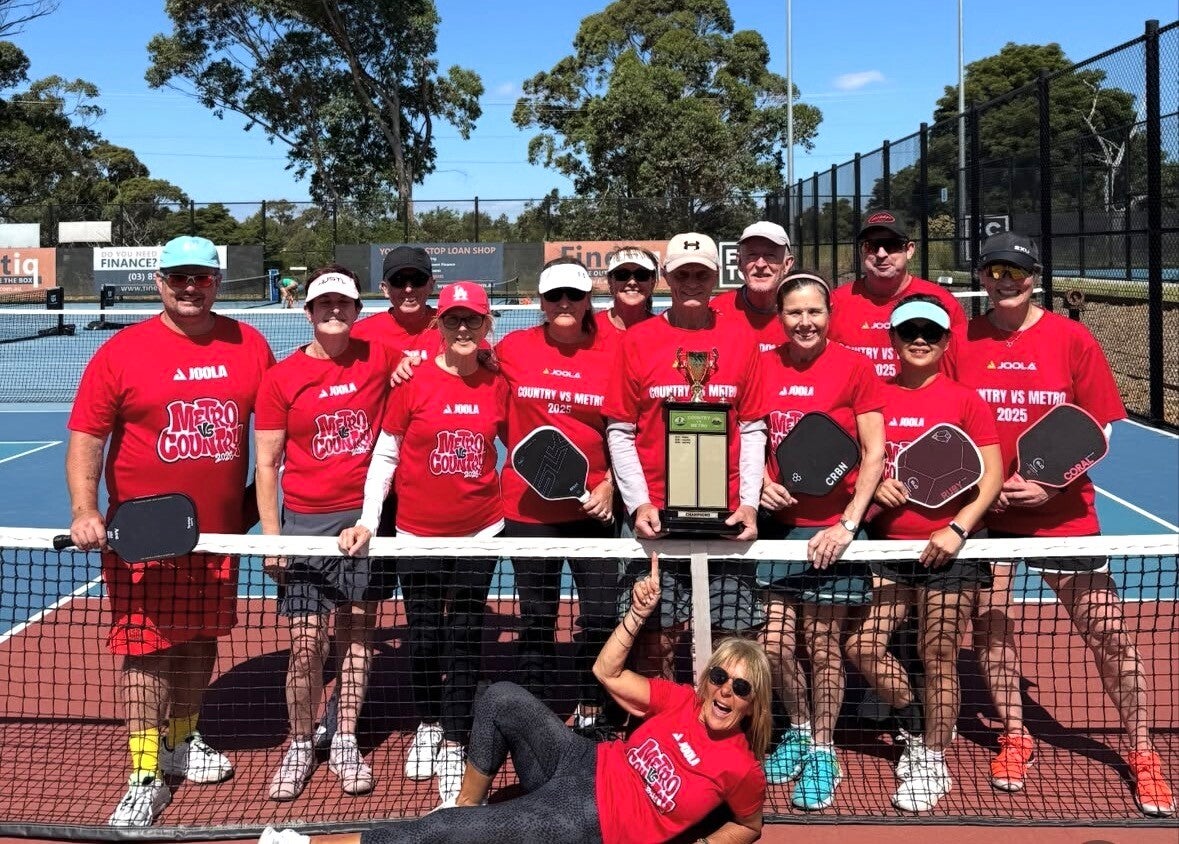 At first glance, it’s a group of smiling pickleball players in matching red shirts, paddles in hand, trophy front and centre. But look a little longer and you start to see what really matters — connection, camaraderie, and the kind of shared experience that doesn’t end when the final point is played.